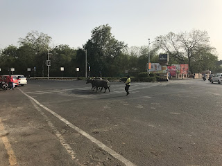 After a quick rest we decide to find an ATM and check out the lay of the land. We see the usual mix of cars and bikes laden with multiple persons beeping at all in front of them. We also see cattle roaming around the streets unattended happily ruling the roost. Cattle in this part of India are protected are it is an offence to slaaughter them . You can getup 14 years in jail for such an offence. Cattle are sacred in Hinduism. After taking a photo of some cattle being driven around a busy roundabout, the cattle driver leaves his herd and chases us asking for money. The cattle are just left to walk further up,the road while Peter and myself walk hurriedly away. We also see stray and mangy doses on the street. One poor mite was,seriously lame, a sad sight.
